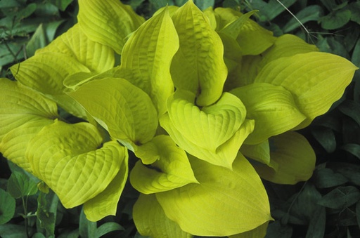 Brilliant lemon-yellow, wedge shaped leaves with wonderful light green margined, pie-crust edges; Good grower. Lavender flowers in mid summer. Plant in partial sun to full shade. Large hosta.