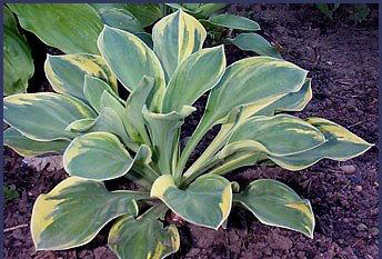 Medium green, lanced shaped leaves with creamy yellow aging to creamy white margins; Good grower. Pale purple flowers in July. Plant in partial sun to full shade. Small hosta.